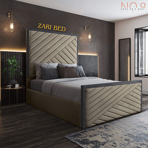The Bangor Upholstered Bed Frame with Cutting Line Headboard shown in the picture is made up of premium velvet fabric in light brown colour. However, we have a range of fabric choices and color schemes. So, you can go for the overall space’s interior and choose the best colour combo for that. In addition, fabric choices also depend upon our valued customers. In short, the final product’s upholstering fabrics and paneling choices, and colour scheme depend on them.