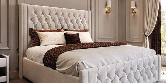 The sand coloured stylish bed set is the perfect choice to furnish your aesthetic and classic bedrooms, guest rooms, and personal spaces. Our Falmouth upholstered beds are made up of premium material and are trusted by hundreds of our happy customers around the globe. The lines and border detailing on the headboard and footboard give an ultimate luxurious feel with a classic wingback design. The two-year warranty that comes with our premium products showcases the product’s durability, premium material, and craftsmanship.
