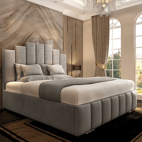 The Kingston Upholstered Bed Frame With Mountain Headboard in luxurious light grey colour velvet fabric upholstery as shown. However, we have a range of fabric choices and colour schemes. So, you can go for the overall space’s interior and choose the best colour combo for that. In addition, fabric choices also depend upon our valued customers. In short, the final product’s upholstering fabrics and paneling choices, and colour scheme depend on them.